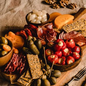 Elevate your gathering with a custom charcuterie board or small bite options to match your theme or dietary needs.